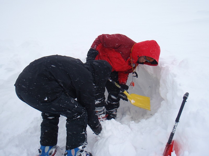 ビーコンを入れたザックを埋めて、掘り出しまでのタイムを計るものです。